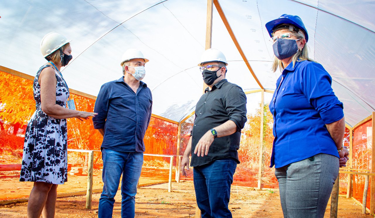 Vander e Turine vistoriaram a construção, que está sendo erguida ao lado do Ginásio Moreninho e foi retomada recentemente. A visita foi acompanhada pelo pró-reitor de Extensão, Cultura e Esporte, professor Marcelo Fernandes Pereira; pelo pró-reitor de Administração e Infraestrutura, Augusto Cesar Malheiros; pela diretora-presidente da Fundação de Apoio à Pesquisa, ao Ensino e à Cultura (Fapec), Nilde Brun; e pela gestora técnica do projeto do Mercado Escola, Mirian Coura Aveiro.